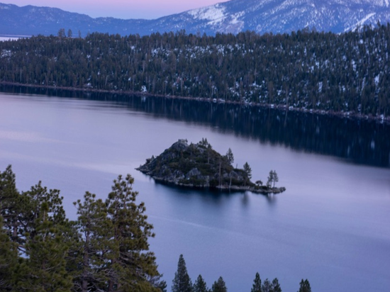 Emerald Bay State Park is one of Tahoe’s most photographed locations, and for good reason. Granite peaks rise dramatically from the water, framing a sheltered bay that shifts colors with the light—from deep sapphire to glowing emerald. While summer brings kayaking and boat tours, winter reveals a quieter, more dramatic side of the landscape.