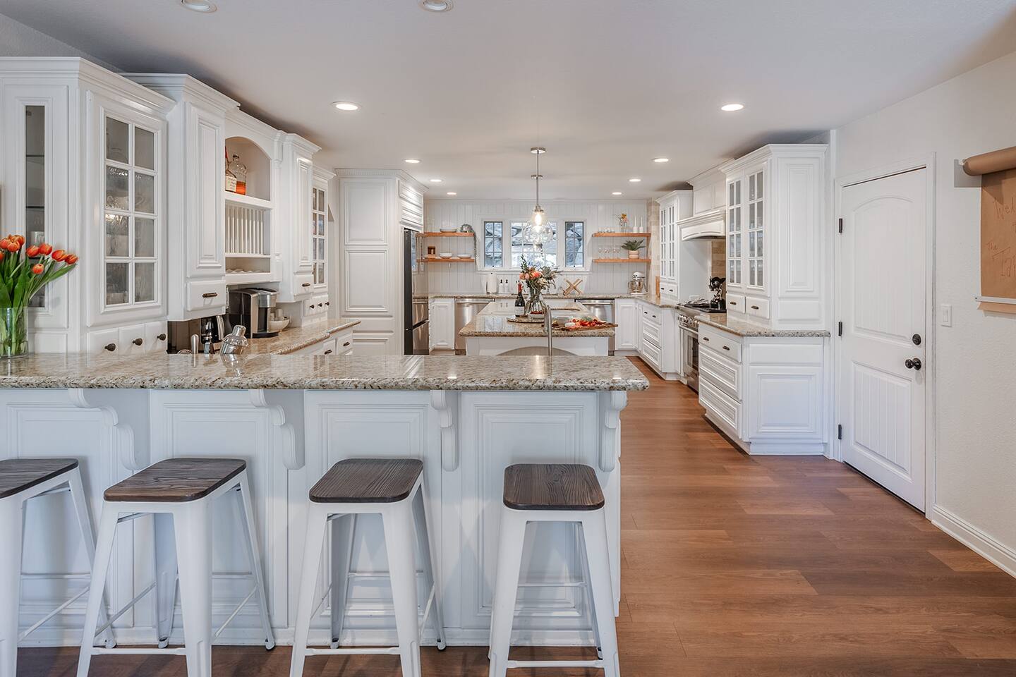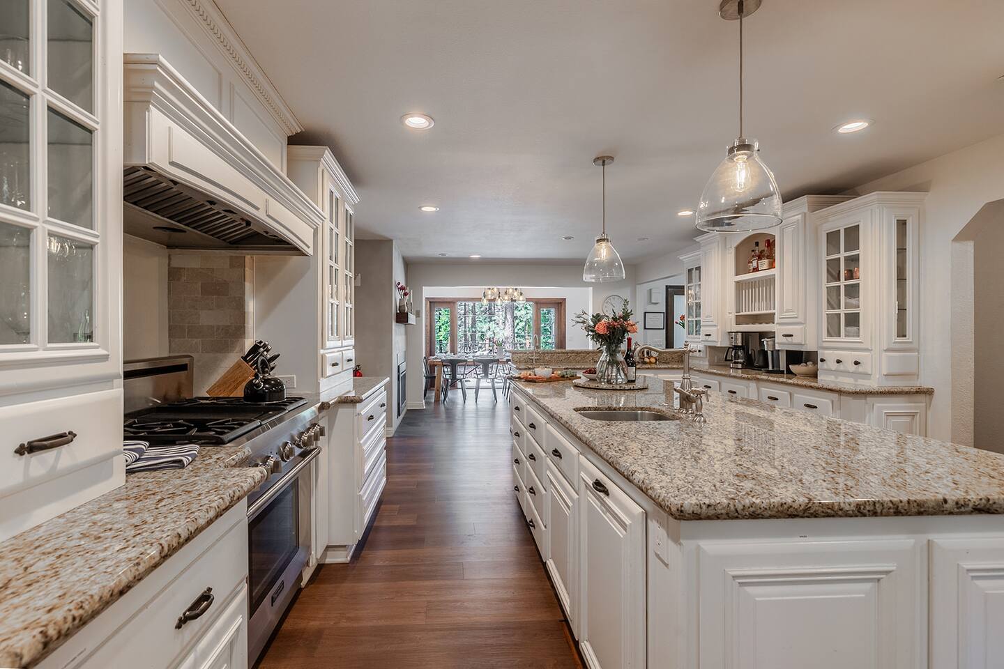 What truly sets this home apart from so many others is the professional chef-style kitchen. The place where everyone seems to congregate when the house is full, merriment is being made, and all the culinary masterpieces are being created. With three sinks, plenty of counter/ storage space, and a restaurant-style stove top & oven, you'll be inspired to share the most fabulous of meals.